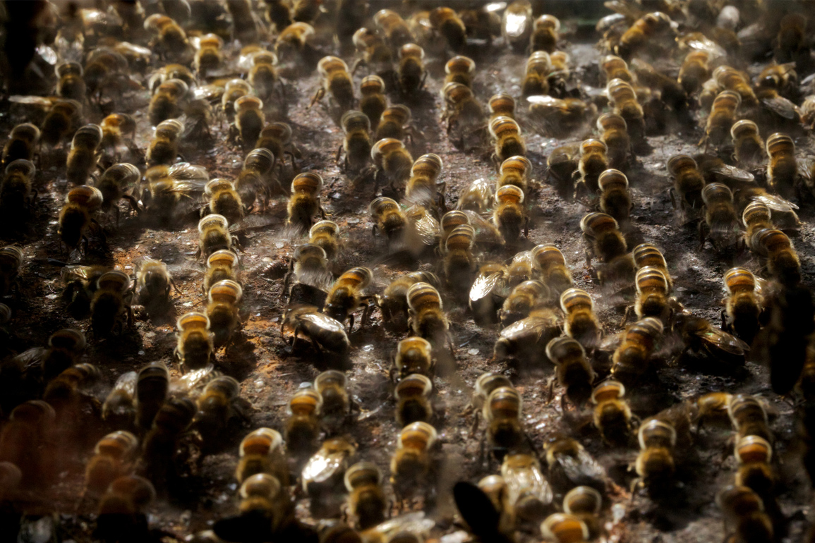 Apiculteur professionnel et créateur de la cité de l’abeille en 1985, Alain essaye de saisir, enfumoir d’une main, appareil photo de l’autre, les instants d’intimité des abeilles qu’il nomme Apis magnifica. Les abeilles de « sa » cité voltigent de fleurs en fleurs au cœur du parc naturel régional du Livradois-Forez. Au sud de Vichy, à mi-chemin entre Clermont-Ferrand et St-Etienne, dans le « six-trois », à 1800 km au nord de Tanger. Cette cité à pour banlieusard, la fourmi, le lézard, le papillon, le blaireau et le roux renard auvergnat. Celui qui est leur apiculteur essaye de les aiguillonner, sachant qu’au final ce sont elles qui au bal mènent la danse. « Le berger des abeilles » ne fait que s’adapter à leur vie d’insectes insoumis, libres d’aller et venir, au gré de leurs désirs, du temps, du vent, de la chaleur, de la couleur et des odeurs, sans passeport et sans visa, sans carte de séjour et sans permis de travail, à l’heure ou la France s’emmure dans son alvéole hexagonale.