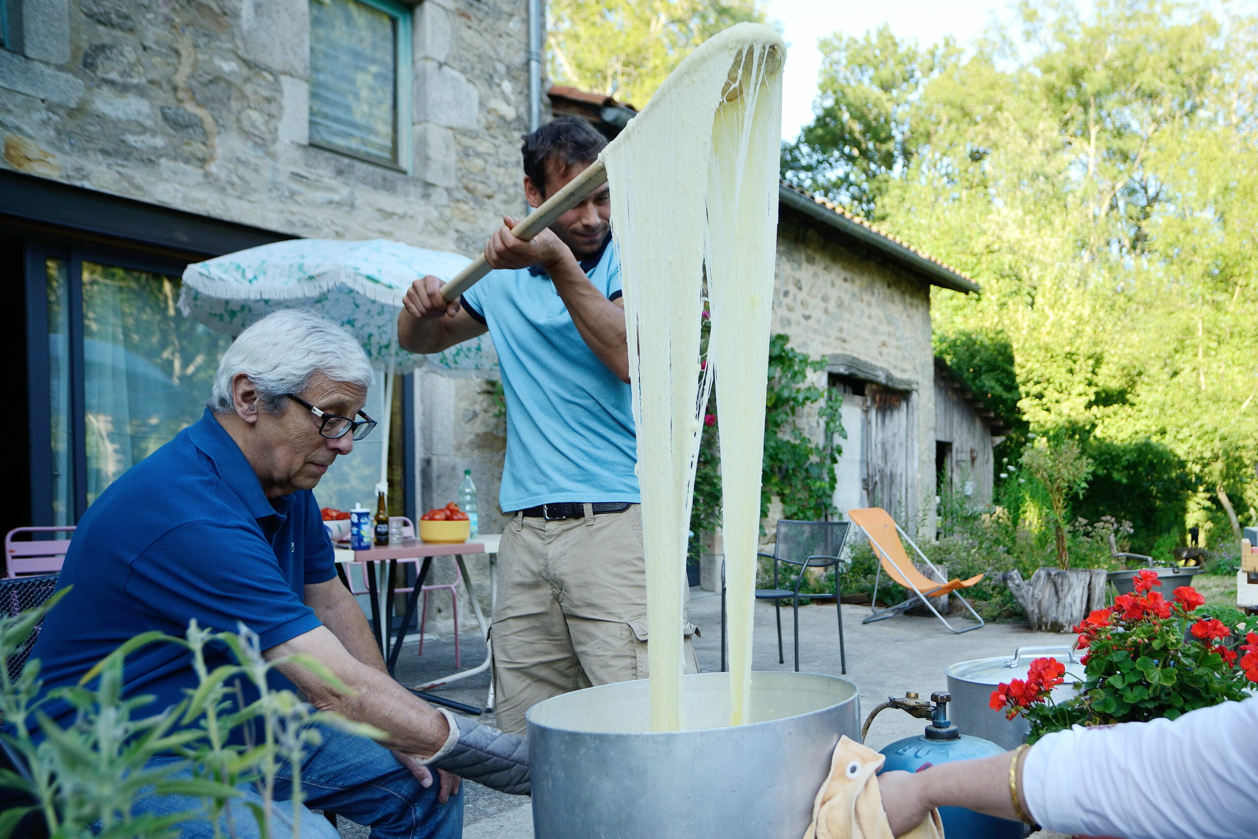 Le matin, Mélina nous avait initié à la fabrication d’un baume à la cire d’abeille et d’un macérât huileux de soucis.